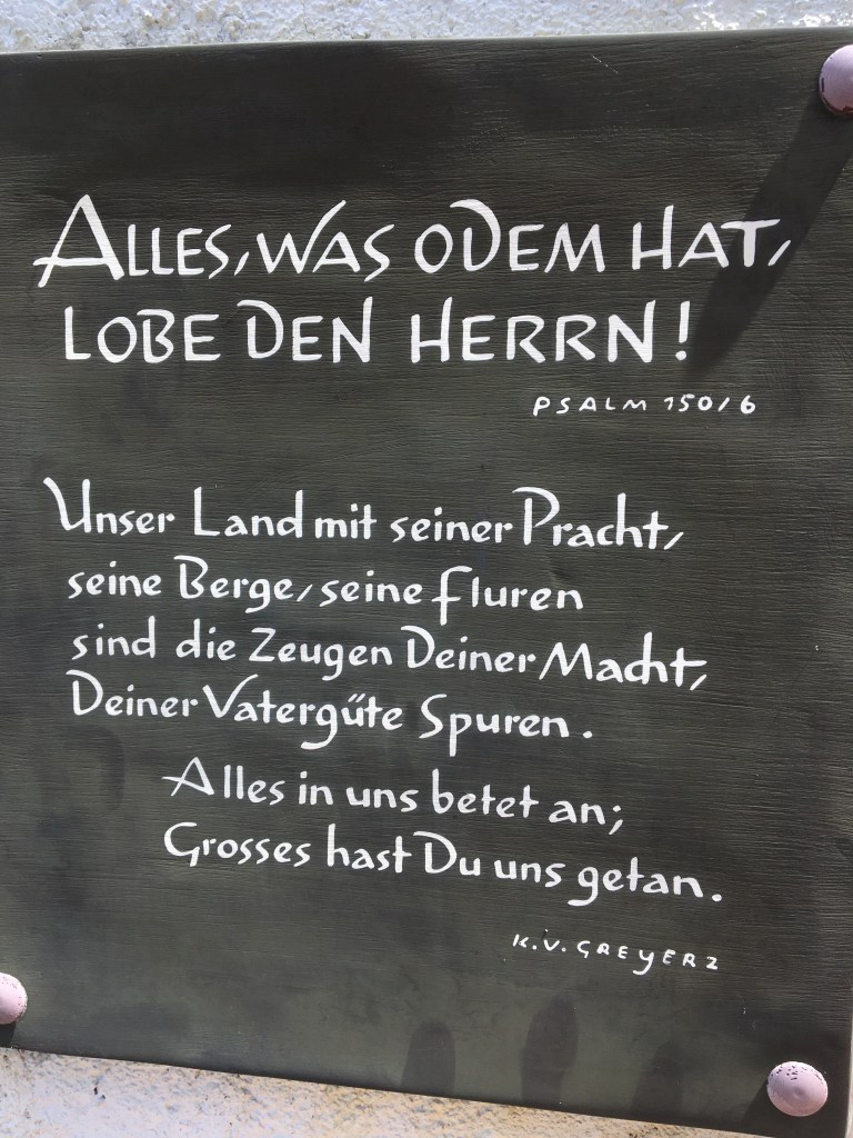 Un petit panneau sur la gauche la façade y cite un psaume en dialecte haut valaisan : « Alles, was odem hat, lobe den Herrn ». Un mot nous résistait : Odmen. Que pouvait bien-t-il dire ?