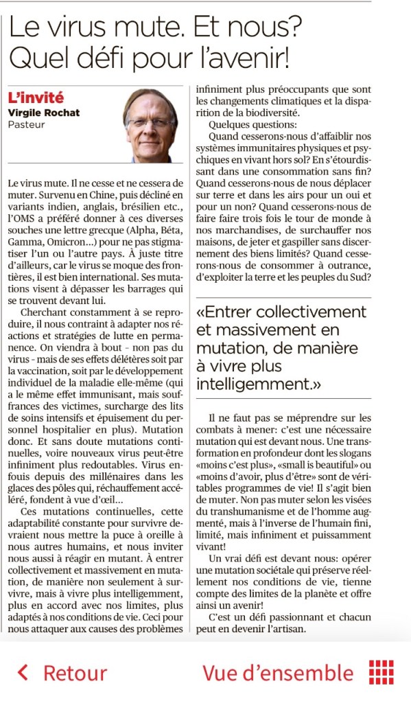 Merci Virgile pour ton exhortation et les questions posées dans ton bel article du 24 Heures du jour.