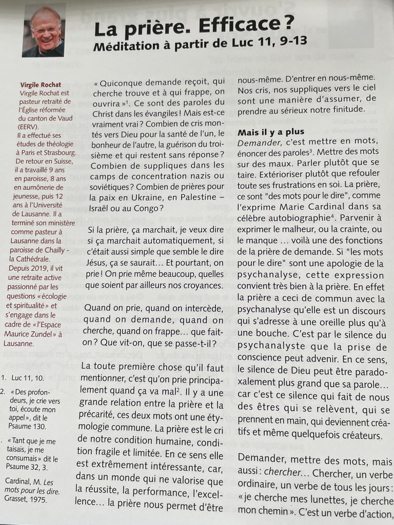 Article paru dans la revue « Itinéraire » Ecublens, mars 2024
