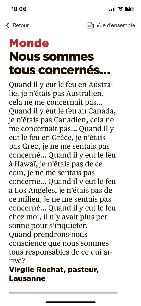 Mon courrier des lecteurs sur le journal 24H du 21 janvier 2025 (voir l’origine ci dessous